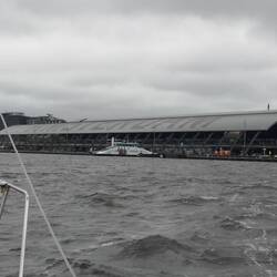 We decided to depart Willemstad to avoid any incident with a large ferry's arrival & the need to pass this bridge on the hour. Ronney started to think we wouldn't make it on time & so sail out toLæs mere