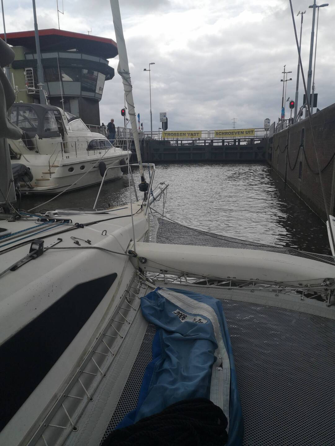 Set off from Veerse Meer at 7.30am and motored on to Krammer, with breakfast and lunch underway. The lock acts as a barrier between the salt water Oosterschelde and the fresh water Volkerak. The locksLæs mere
