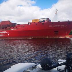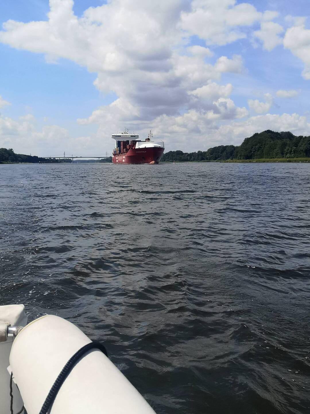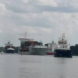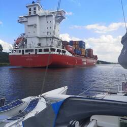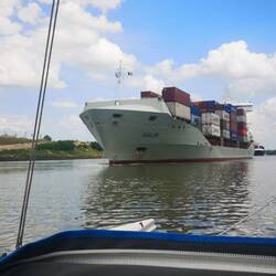 After a more restful night's sleep, we set off along the canal for the final 25 miles with occasional flurries of big ship watch. It really is quite an experience coming up so close to these giantsLæs mere