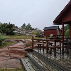 5 hours- 43 miles in light winds -2 soggy sailors arrived in Finland at this very welcoming island.