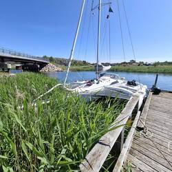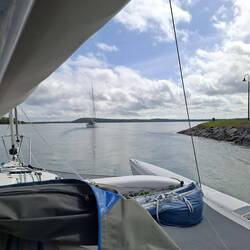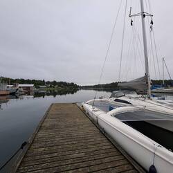 It was a fairly long motor sail arriving in beautiful sunshine . We were guided to a suitable spot behind a Polish boat and spon after a beautiful old wood boat came alongside them. We shared our stories and the different waters we've all sailed. Such friendly people.