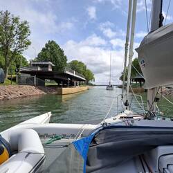 We passed through the smallest of canals, just 0.2nm, (Lemströms Kanal) with the hourly opening bridge ready for the rush hour - just 2 boats going through each end. This opened into Lumparn Bay (5.5 nm x 4.5nm)