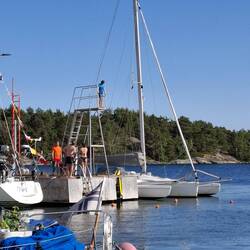 The laundry room booked for later , we enjoyed a light lunch at the waters edge restaurant in the shade. The very high(15m) jumping platforms at the nearby bathing area provided entertainment with the occasional brave jumpers.