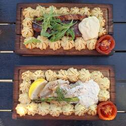 The ship yard restaurant with outside eclectic mix sofa and benches under large sail awnings lead you into a carefully designed restaurant. Local photographs , plants, and industrial vents and pipes give the place authentic character . Great staff and delicious food - a real buzz and atmosphere . It was obvious this place had a thriving business - their excellent reputation was clearly pulling large numbers and people were arriving in smart ribs (as well as cars) from their waterside homes from near and possibly further afield islands .