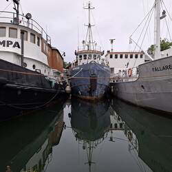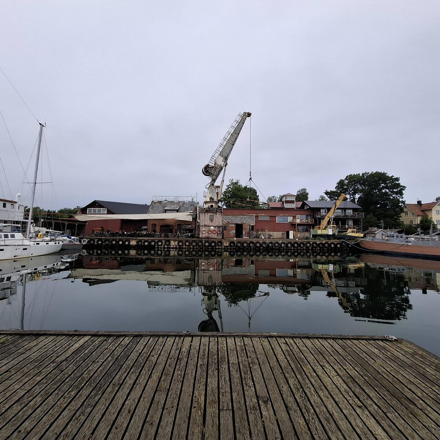 We'd read up on this surreal harbour in the northern Stockholm archipelago. It sounded so bizarre we just had to make the extra few miles to see what it was about. Great huge ships, some just rotting away sat in multi layers , others used as homes . The weirdest place with a working boat yard , cranes, slipways and winching machinery along the waterfront and in behind some opulent Swedish homes jarring with the scruffy ship yard and warehouse look.