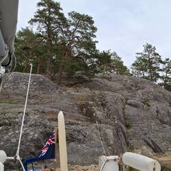 The north easterly winds were building as we headed into the heart of Åland for shelter tonight. Mooring up here with bow hook up on the buoy and stern to was a bit of a challenge with the wind and protecting the rudder and prop from Whispers desire to swing in the wind.