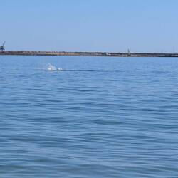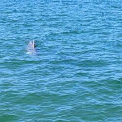 Went to the beach this morning hoping for some dolphin to pass by. Was actually lucky, one came closer but obviously was very busy hunting. And she obviously got a squid. Amazing to see a dolphinBaca lagi