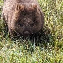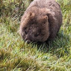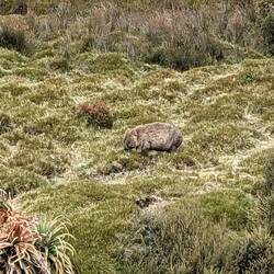 As I got off the buss at Ronny Creek I scanned the hill for the Wombat. But he/she wasn't there anymore. Started talking to a couple from Australia on the way and as we came around one corner, thereBaca lagi