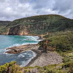 It was super windy at Hazards Beach. Hade to moved my planned lunch break a little bit until I reached the end of the beach where the track continues in the forest to find some shelter to eat. Hat just like a 15 minutes break, climbed a little bit over the rocks to see the small bays behind it, so beautiful!