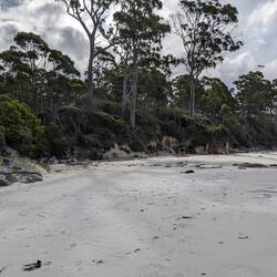 I arrived at the campground in the adventure bay shortly past 5pm, checked-in and got my tent ready for the night. Had a quick shower and then some dinner. Hope the wind is calming down a little bit over night. I have some shelter but it's so loud. The trees and the waves crashing on the beach.