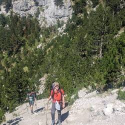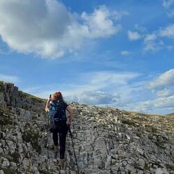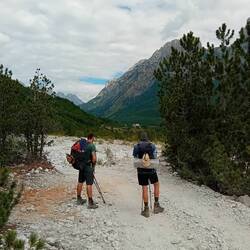 Heute waren die Weg- und Wetterbedingungen perfekt zum Bergwandern. Es ging über schmale und felsige Pfade 1.060 m hinauf, vorbei an Bergseen und schönen Ausblicken über die Berge des Kosovos.Baca lagi