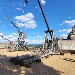 Diese Trutzburg trohnt hoch etwas weiter westwerts über der Dordogne. Hier wurden viele Waffen aus dem Mittelalter gezeigt. Besonders eindrucksvoll waren die riesigen Steinschleudern mit denenLeia mais
