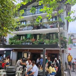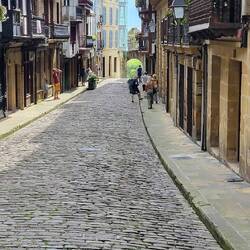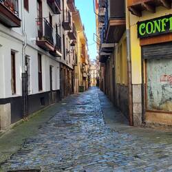 Mit dem E Bike nach Hondarribia gefahren. Der Ferienort liegt am Südamerika des Rio Bidasoa. Es hat eine historische Altstadt. Typisch hier die basische Häuser mit ihrem speziellen Stil. AlleLeia mais