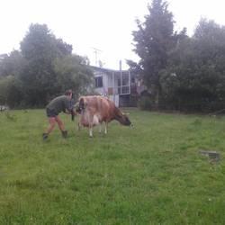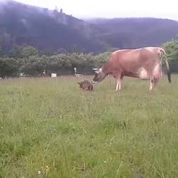 Als ich abends noch die Pferde besuchen wollte, haben die Nachbarn (bei denen ich Housesitting gemacht habe) mich aufgeregt zu sich auf den Hof gewunken: Ihre Kuh Milly war gerade dabei, ihr Kalb zu gebären. Nach unzähligen Wehen, bei denen immer wieder Fruchtwasser und schleimige Fruchtblasenstücke herausgekommen sind, die die Kuh direkt gegessen hat (anscheinend benötigt sie das Protein darin), haben schließlich zwei kleine Hufen aus dem After geschaut. Obwohl die Kuh sich unheimlich angestrengt hat, hat sie es nach mehreren Anläufen immer noch nicht geschafft, das restliche Kalb herauszupressen, sodass schließlich der Familienvater die Hufen geschnappt und vorsichtig gezogen hat - bis auf einmal ein kleines Köpfchen heraus geschaut hat. Das Kalb schien wie tot, die Zunge hing seitlich aus dem Maul heraus, es hat sich nicht bewegt - bis es endlich unsanft auf den Boden gefallen ist und Milly angefangen hat, es liebevoll trockenzulecken. Plötzlich war das nasse Fellknäul ganz aktiv, hat die Augen geöffnet und hat nach wenigen Minuten schon die ersten Laufversuche gestartet, ist aber immer wieder umgefallen und hat dabei süße Purzelbäume geschlagen. Diese Kälbchengeburt war auf jeden Fall ein absoluter Gänsehautmoment und ein ganz besonderes Erlebnis für mich!Read more