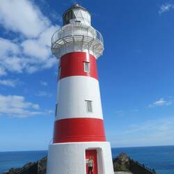 Nicht weit entfernt von der Küste haben wir nach unserer Wanderung noch einen Abstecher zum Cape Palliser, dem südlichsten Punkt der Nordinsel, gefahren. 252 Stufen (wenn wir uns nicht verzählt haben) führten zu einem schön rot-weiß gestreifen Leuchtturm hinauf, von wo man einen tollen Rundumblick über Meer, Strand und Berge hatte.