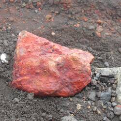 Nach etwas mehr als 8 Kilometern hatten wir die schlimmsten Ansteigungen geschafft und waren nun auf dem Roten Krater angelangt. Viel gesehen hat man leider immer noch nicht, man konnte nur erahnen, dass es sich um einen ziemlich tiefen Krater handeln musste. Immerhin haben wir ihn durch die austretenden Schwefelgase bestens gerochen und auch das rote Gestein lies sich an einer Stelle erkennen.