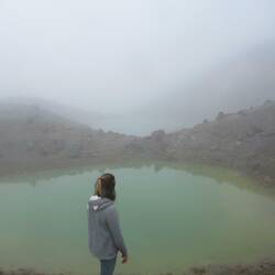 Die letzten Kilometer führten uns durch einen typischen neuseeländischen Dschungel-Wald. Obwohl dieser ständige Landschaftswechsel motiviert hat, kamen uns die letzten zwei Kilometer endlos vor. Nach sieben Stunden wandern mit nur einer kleinen Mittagspause aber vielen Fotosstopps (oben auf dem Vulkan war es mit ca. 4°C zu kalt um lange stehen zu bleiben) taten uns doch ziemlich die Füße weh, zumal es meine bisher längste Wanderung war. Dennoch war es mit Abstand die tollste Strecke, die ich bisher gelaufen bin, ich habe mich tatsächlich wie in einer anderen Welt gefühlt und war total fasziniert von diesen Mondlandschaften, die wir durchquert haben. Ein klarer Tag wäre sicherlich besser gewesen, um die ganzen Seen und Krater richtig zu sehen, der Nebel hat aber alles ziemlich mystisch erscheinen lassen.