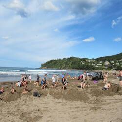 Später sind wir zum berühmten Hot Water Beach gefahren, um dort die Bekannte zu treffen. Auch hier war ich schon einmal, sodass wir uns nicht wie die ganze andere Menschenmasse, die sich hier tummelte, ein Loch in den Sand gegraben und in die heißen Wasserlöche gelegen haben. Trotzdem fand ich es wieder faszinierend, dass das Meerwasser so kalt war, während das Wasser am Strand teilweise so heiß war, dass ich mich fast verbrannt habe, als ich mit meinen Füßen reingestanden bin.