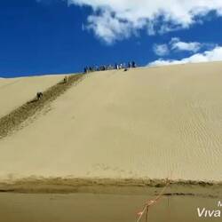 Auch unser nächster Stopp war nicht weniger interessant: wie aus dem nichts tauchte plötzlich eine riesige Sanddüne vor uns auf, auf die wir direkt zugesteuert sind. Am Fuße der Düne hielt unser Busfahrer an und packte einige Bodyboards aus - wir durften uns an dem berühmten Sandboarding versuchen. Dazu mussten wir erstmal auf eine Düne klettern, was anstrengender war als gedacht. Oben angekommen gab uns unser Busfahrer eine kurze Einweisung: wir sollten uns bäuchlings auf das Board liegen, gut festhalten, die Beine möglichst nah am Boden lassen und versuchen, gerade zu bleiben. Leichter gesagt als getan - einige Leute vor mir flogen kopfüber über das Board hinaus, überschlugen sich oder blieben in der großen Pfütze vor der Düne stecken. Viele Gedanken konnte ich mir darüber allerdings nicht machen, denn schon war ich an der Reihe. Das Board wurde schneller als gedacht, sodass ich richtig Schwung aufgenommen habe und über die Pfütze drüber gesurft bin - das musste ich natürlich gleich nochmal machen!