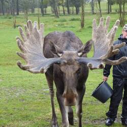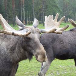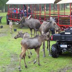 Auf großen, überdachten Wägen, die von Traktoren gezogen wurden, hatten wir zunächst die Möglichkeit Rehe und Hirsche zu sehen, bevor wir schließlich die Elche erreichten. Elche sind noch viel größer als ich erwartet hatte! Trotzdem hatten sie einen ruhige Art und vor allem die Elchkälber waren wirklich süß!
