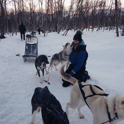 Für die Schlittenhundtour waren wir eine größere Gruppe, trotzdem bekam jeder die Chance einmal selbst den Schlitten zu fahren!