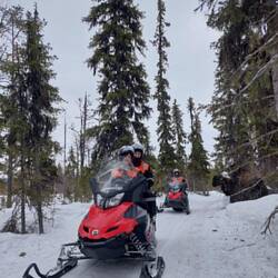 Die Highlights unserer Reise waren definitiv eine Schneemobil- und eine Schlittenhundtour. Bei der Schneemobiltour hatten wir das Glück, einen supernetten, deutschen Guide zu bekommen, der uns zunächst fünf süßen Schlittenhunden vorstellte und uns dann eine private Tour über einen gefrorenen Fluss sowie durch die nordischen Wälder gab. Unterwegs haben wir sogar ein Rentier entdeckt und hatten die Möglichkeit ein komisches Kraut zu probieren, welches auf den Bäumen der sogenannten Tundra-Vegetation wächst und den einheimischen Tieren durch seine vielen Nährstoffe das Überleben sichert (schmeckt wie Fell!).