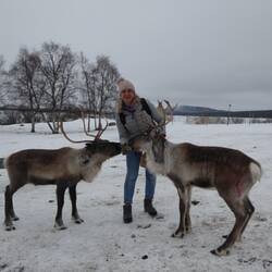 Leider war der Himmel während unseres Aufenthalts in Kiruna dauerhaft mit Wolken bedeckt, sodass wir keine Polarlichter sehen konnten. Dafür füllten wir unsere restliche Zeit mit einem Besuch in dem berühmten Eishotel, dessen Räume komplett aus Eis gemacht und sehr kunstvoll gestaltet sind. Zudem haben wir eine Rentierfarm besucht, haben dort Rentiere gefüttert und in einem traditionellen Sami-Café (Sami sind die Ureinwohner Schwedens) einen Kaffee getrunken, was nach der ganzen Kälte sehr gut getan hat! Auch eine Wandertour über Schnee und Eis auf einen Aussichtspunkt hinauf, haben wir unternommen - und konnten unterwegs sogar einen gut getarnten Schneehasen erspähen.