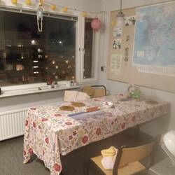 Außerdem veranstalten wir auch einen schwedischen Dinner (Gasque) in unserem Korridor, bei dem wir uns sehr schick anzogen und zusätzlich noch eine verrückte Kopfbedeckung trugen, sodass wir alle ziemlich lustig aussahen!