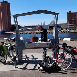 So starten Cyprien und ich am Sonntagmorgen mit unseren vollgepackten Rädern aus Göteborg auf einem der Radfernwegen 'Euro-Velo' in Richtung Kopenhagen. Diese Tour hatte ich zwar letztes Jahr im September bereits mit ein paar anderes Mädels gemacht, in einer anderen Jahreszeit und mit anderer Gesellschaft machte die Tour allerdings trotzdem wieder Spaß!