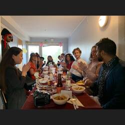 Abends habe ich dann an einem Running Dinner teilgenommen. Dabei geht es darum, dass man in Zweier- oder Dreierteams entweder Vorspeise, Hauptspeise oder Dessert vorbereitet und dann zu jedem Gang bei einem anderen Team isst beziehungsweise selbst Gastgeber eines Ganges ist. Dadurch habe ich erneut sehr viele internationale Studenten kennengelernt und hatte auch die Möglichkeit, einen Einblick in die anderen Wohnheime zu bekommen, die mir auch gut gefallen haben.