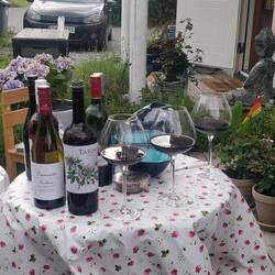 Dabei überraschte uns ein plötzlicher Regenschauer, sodass wir uns unter dem Dach vor der Haustüre versteckten. Dort sah uns die Nachbarin (Kjerstin) durchs Fenster sitzen und hatte wohl Mitleid mit uns! Jedenfalls bot sie uns ein Bier an und so saßen wir kurze Zeit später mit Bier und vielen Snacks auf ihrer Terrasse - dort bot sie uns dann sogar an, bei ihr zu übernachten, was wir gerne annehmen (Fließend Wasser, Strom und ein weiches Bett zu haben, ist ziemlicher Luxus!).