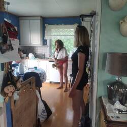 So verbrachten wir den ganzen Tag in ihrem Garten - und bekamen dabei ständig Snacks und Wein, durften Kjerstins Standup-Paddle ausleihen und hatten witzige Gespräche mit ihr! Kjerstin war eine ziemlich interessante Frau - trotz ihren 62 hüpfte sie den ganzen Tag durch den Garten und durch ihr Haus (und zwar in ihrem knallroten, australischen Rettungsschwimmer-Bikini). Ihr Haus ist ein ziemliches Chaos, ihr Garten ist ganz wild dekoriert und wurde den ganzen Tag mit lauter Musik beschallt. Ab und zu ging Kjerstin an, zur Musik zu tanzen oder auf ihrem Saxophon mitzuspielen. Außerdem hatte Kjerstin eine Liege mit Germanium-Steinen, die anscheinend gute Auswirkungen auf den Körper haben sollte (auch sonst glaubte sie an verschiedene übernatürliche Kräfte), die wir ausprobieren und am Ende des Tages kochten wir eine französische Quiche für sie. So wurde es ein ziemlich lustiger und auch erholsamer Tag (nur Cyprien musste ein bisschen im Garten helfen).