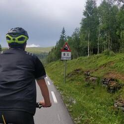 Die letzte Etappe betrug nur noch 75 Kilometer und war tatsächlich recht flach für Norwegen. Es war zwar ziemlich windig, allerdings machte mir das nicht so viel aus, da ich mich mal wieder in Cypriens Windschatten versteckte. Außer war es schön warm (20 Grad, meine Definition von warm hat sich ein bisschen geändert), sodass wir uns für den heutigen Tag das Ziel gesetzt haben, noch ein bisschen braun zu werden!