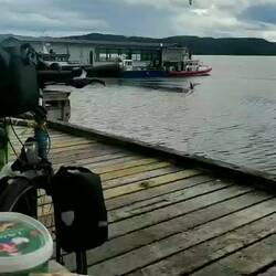 An der Fähre angekommen, war ich komplett nass und durchgefroren (es hatte zusätzlich zu dem Regen nur 13 Grad und es windete ziemlich), sodass ich gar keine Lust mehr hatte, in diesem Wetter weiterzufahren. So versuchte ich, einen Bus oder eine Fähre zu finden, die mich weiter nördlich bringen würde. Leider stellte sich heraus, dass wir die nächsten Tage kaum Städte durchqueren würden, sodass auch der öffentliche Nahverkehr ziemlich schlecht ausgebaut war. Es gibt hier nur einen Bus am Tag, den wir leider schon verpasst hatten.