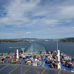 Danach deckte ich mich mit überteuerten Essen aus einm norwegischem Supermarkt ein und fuhr mit meinem Rad noch ein bisschen die Hafenpromenade bis zum berühmten Opernhaus von Olso ab, bis ich am Nachmittag auf die Fähre nach Frederikshavn in Dänemark ging. Dort genoss ich die Hafenausfahrt aus dem Fjord vor Olso auf dem Deck - Fähre fahren ist definitiv angenehmer als Zug oder Bus zu fahren!