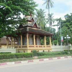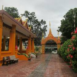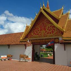 Ebenso wie in Thailand gibt es auch in Laos viele Tempel, sodass wir unterwegs an einigen vorbeigefahren sind. Viel Zeit hatten wir leider nicht; gehalten haben wir nur kurz bei einem der wichtigsten Wahrzeichen Laos', der Stupa 'Pha Tat Luang', einem riesigen, tempelartigen, goldenen Gebäude. Kurz darauf mussten wir unsere Mopedtour leider schon wieder beenden, um am Abend mit einem Bus in die laotische Stadt Thakek zu fahren.