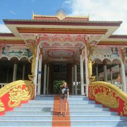 Zwischen den Unterrichtsstunden versucht Hannah mir so viel wie möglich von der Stadt Savannakhet zu zeigen. Wir waren schon beim lokalen Markt und haben dort weitere exotische Früchte probiert. Auch haben wir ein Frauenhaus besucht, das hilfsbedürftige Frauen und Mädchen aufnimmt, denen wiederrum Schneidern gelehrt wird und bei welchem Hannah sich einen Rock anfertigen lassen hat. Beim Abholen wurden wir dann netterweise von der Leiterin herumgeführt, durften uns das Gelände mit kleinen Wohnhäusern, Schule, eigenen Gemüseplantagen, Schneiderräumen und einem Webstuhl anschauen, an dem wir uns sogar selbst im Weben versuchen durften - gar nicht so einfach wie es aussieht.