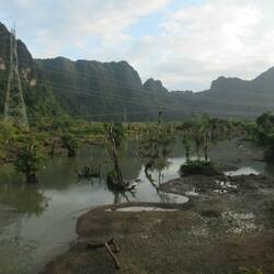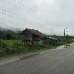 Viel mehr Zeit vertrödeln konnten wir dann leider nicht mehr, wir mussten endlich los. Innerhalb weniger Minuten waren wir von dem kalten Regen durchnässt - in Laos kann man tatsächlich frieren -, und so sind wir die nächsten sechs Stunden im Regen mit nur einer kurzer Pause weitergefahren. Irgendwann war uns so kalt, dass wir nicht mal mehr an irgendwelchen Sehenswürdigkeit stoppen wollten und waren total froh, als wir am Nachmittag endlich das Haus der Freiwilligen in Thakhek erreicht hatten. Hier stand das Wasser schon mehr als knöcheltief im Hof, was uns dann aber auch nicht mehr gestört hat.