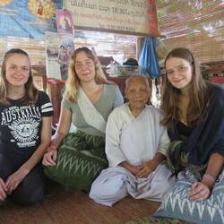 Herausgefunden habe ich, dass es prinzipiell gar nicht so schwierig ist, mit den Leuten zu kommunizieren, wie ich es mir vorgestellt habe. Hannahs Schüler haben alle schon ein wenig Vorwissen und verstehen einfache, langsam gesprochene Sätze gut. Da der Kurs auf freiwilliger Basis läuft, sind die Schüler auch sehr motiviert, wollen englisch lernen und vor allem sehr viel kommunizieren. Als Hannahs Freundin wurde ich auch direkt als eine Art zweite Lehrerin akzeptiert, wurde von den Schülern mit interessierten Fragen gelöchert und habe Hannah ein wenig beim Unterrichten assistiert. Nebenher habe ich sogar selbst ein kleines bisschen laotisch gelernt, kann nun einige wenige Sätze sagen und bis zehn zählen.