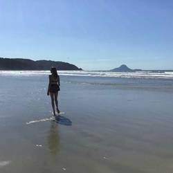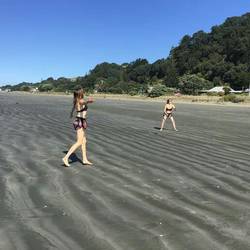 Danach konnten wir unseren Weg zum Strand ohne weitere Unterbrechungen (bis auf einen Stopp zum Frispee kaufen) fortsetzen.Es war wunderschönes Wetter, ich habe zum ersten Mal in Neuseeland Top und Hotpants getragen. Den Nachmittag haben wir dann mit Frispee spielen, im Meer schwimmen, am Strand tanzen und Bräunen verbracht - und hatten total viel Spaß.
