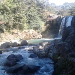 Kurze Zeit später hat uns dann der Bus wieder aufgesammelt und wir haben unseren Weg fortgesetzt, der uns durch rasch wechselnde Landschaftsbilder geführt hat. Zunächst sind wir durch den Tongariro Nationalpark gefahren, der uns durch eine Steppe und verschneiten Bergen am Horizont führte, wo wir nochmal einen bekannten Herr der Ringe - Drehort (Tawhai Falls) besucht haben, später haben die Region "Kingland" erreicht, damit die unzähligen Milchfarmen hinter uns gelassen und dafür in die Region der Schaffarmen gelangt (eine Schafsweide ist hier teilweise größer als ganze Dörfer in Deutschland).
