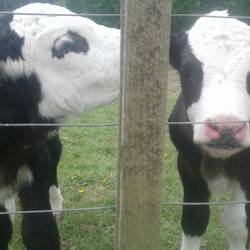 Die Kälber sind unglaublich süß! Die etwas Älteren sind schon auf der Weide, als wir mit dem Wagen dort hin gekommen sind, ist uns eine Herde schwarz-weiß gefleckter Tiere entgegengerannt und hat uns freudig empfangen.