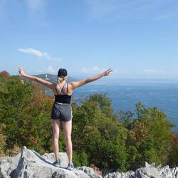 Schließlich fuhren wir weiter und überquerten dabei die Grenze zu Italien. Dort folgten wir der Küstenstraße weiter südlich bis fast nach Triest. Unterwegs unternahmen wir eine kleine Wanderung auf dem Rilkeweg, der entlang der Klippen über dem Mittelmeer entlangführte und die wir anschließend in einem Biergarten mit Aperol Sprizz beziehungsweise Hugo beendeten.