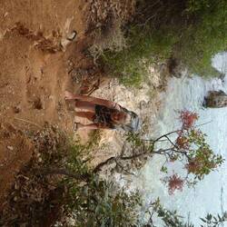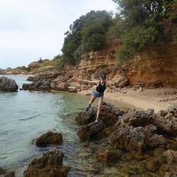 Nach einer kurzen Wanderung durch das vertrocknete Unterholz erreichten wir eine sehr schöne Bucht mit türkisblauem Wasser, wo wir uns mit unserem Campingkocher Kaffee kochten und anschließend an den Klippen entlang schnorchelten