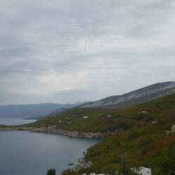 Die Gegend im Norden Kroatiens wirkte ziemlich triest. Die Berge, die steil neben der Küstenstraße aufragten, waren spärlich bewachsen und auch die vielen Inseln, die wir von der Straße aus erspähen konnten, waren ziemlich karg. Zudem war es ein bisschen diesig, sodass die ganze Gegend ein eher gräulich wirkte (was aber trotzdem seinen Charme hatte!).