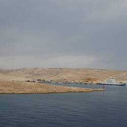 Dort mussten wir allerdings feststellen, dass wir definitiv nicht die Einzigen waren, die diese Fähre nehmen wollten. So staute es sich bereits 3 Kilometer vor dem Hafen, sodass wir letztendlich nach 1,5 Stunden Wartezeit in praller Sonne bei 31 Grad weitgehend ohne Klimaanlage und ohne Wasser die 12:30 - Fähre nahmen.