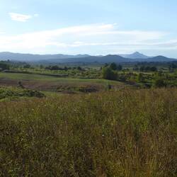 Auf unserer Weiterfahrt folgten wir zunächst eine Weile lang dem türkisblauen Fluss Soci, der von bewaldeten Bergen umsäumt war. Die Blätter der Bäume waren vor allem orange und braun, sodass man meinen könnte, dass es schon Herbst sei - dabei waren die Bäume dank der Dürre einfach extrem ausgetrocknet und teilweise schon abgestorben.