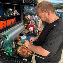 Es war schon 22 Uhr und kein Campingplatz hatte mehr offen. Also haben wir uns an den Straßenrand gestellt und im Auto geschlafen.
