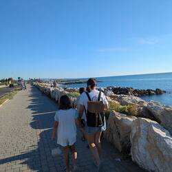 Nach einer Serpentinenfahrt landeten wir auf dem 4 Sterne Campingplatz L'ultima Spiaggia mit schönem Strand. Leider gab es keine surfbaren Wellen, daher spazierten wir etwas am Strand entlang. KarimLäs mer