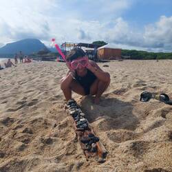An Linas Geburtstag kommen wir in Camping Cala Ginnepro, einer der größten Campingplätze auf Sardinien, an. Wir suchen uns einen schönen Platz in der Sonne und wir fühlen uns gleich wohl hier. EsLäs mer
